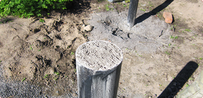 Сваи монтируются до упора, при этом наружная высота может оказаться разной по отношению друг к другу. Поэтому верхняя часть свай подрезается, чтобы нивелировать неровность грунта.